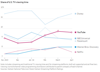 People spent nearly 10% of their TV-viewing time watching the service, home to videos by creators like MrBeast. WSJ